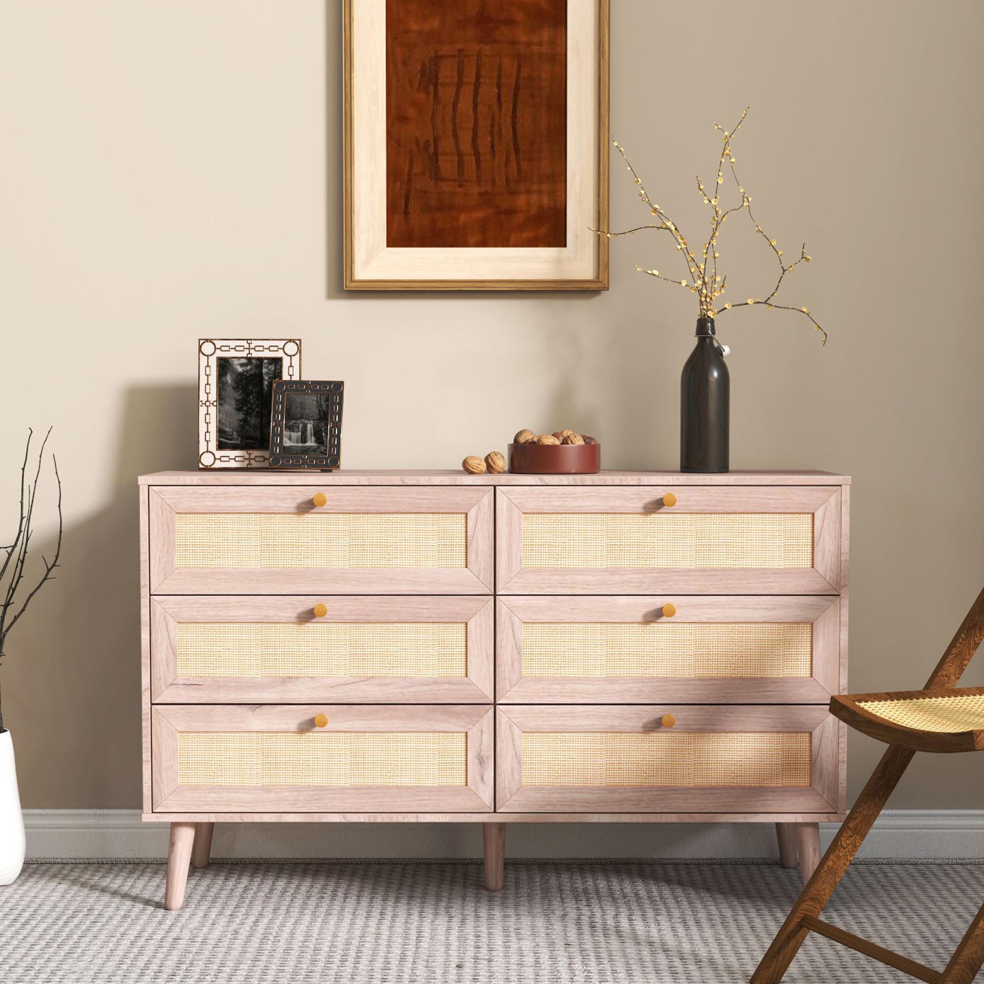 Clearance - Ferrero Natural and Woven Rattan 6 Drawer Wide Chest