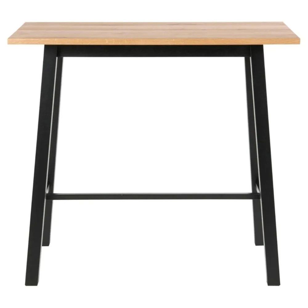 Item Code: 75078 This bar table is the perfect addition to any home. It comes fully assembled in a beautiful wild oak veneer and black finish, and its wood construction offers style and quality in one. Its small size makes it a convenient addition to any living space, while offering the perfect place to share conversations or meals.
