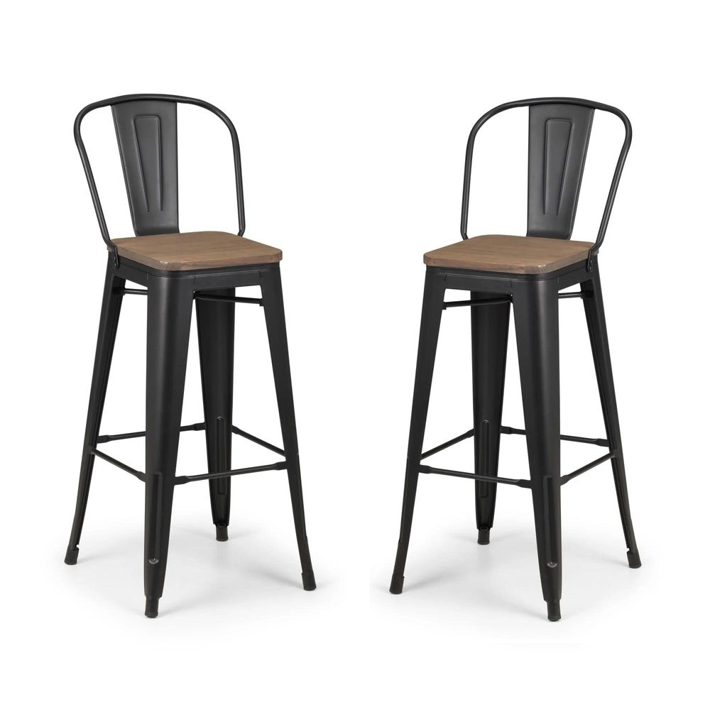 Item Code: GRA302/GRA301 Crafted from solid Elm wood and satin black powder coated steel, The Grafton Bar Table offers a suitable dining or drinking area for up to 4 people. Accompanied by 2 Stools, crafted from solid Elm wood and satin black powder coated steel, The Grafton Bar Features an open curved back for extra comfort, adding an industrial touch to any room.