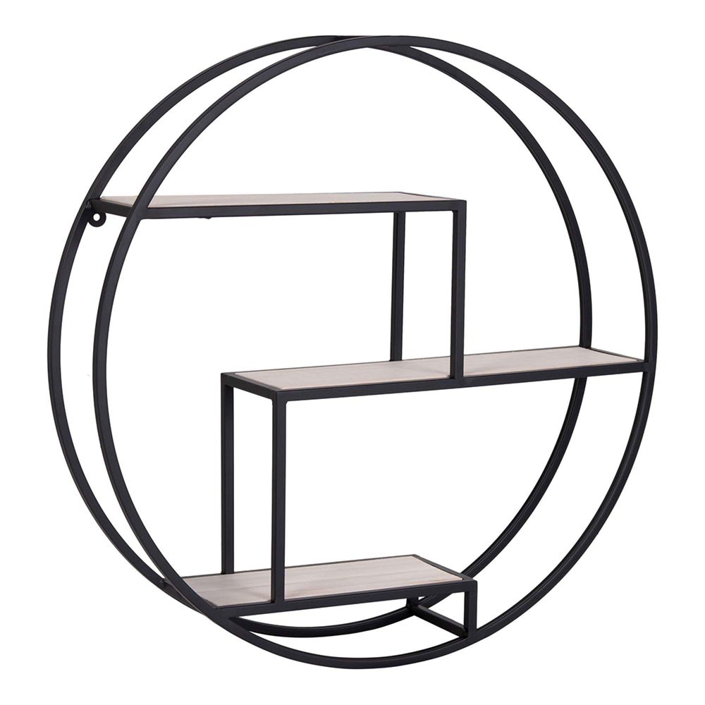 The Rotterdam Black Metal Round Wall Shelf brings a modern industrial touch to your home décor. Crafted from durable black metal, its circular frame and open shelves create a stylish balance of structure and simplicity. The sleek, round shape softens the industrial aesthetic, making it a versatile accent piece for both contemporary and classic interiors.
