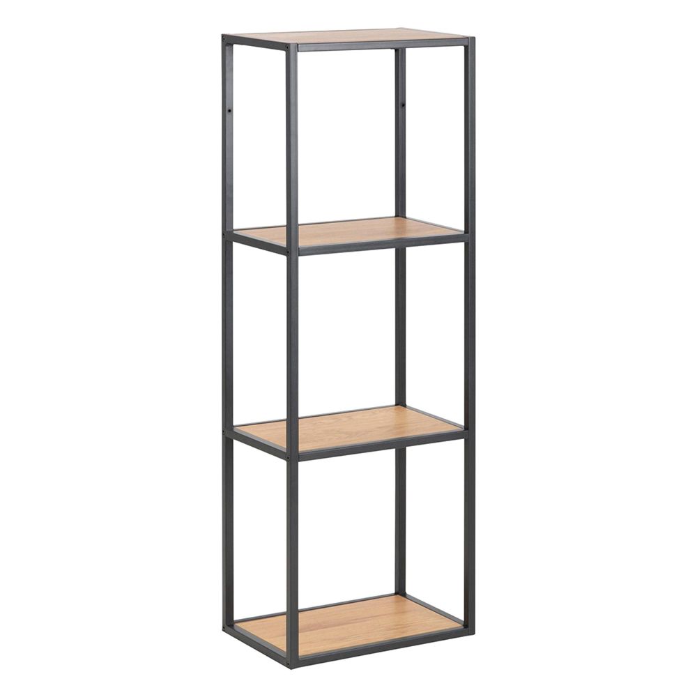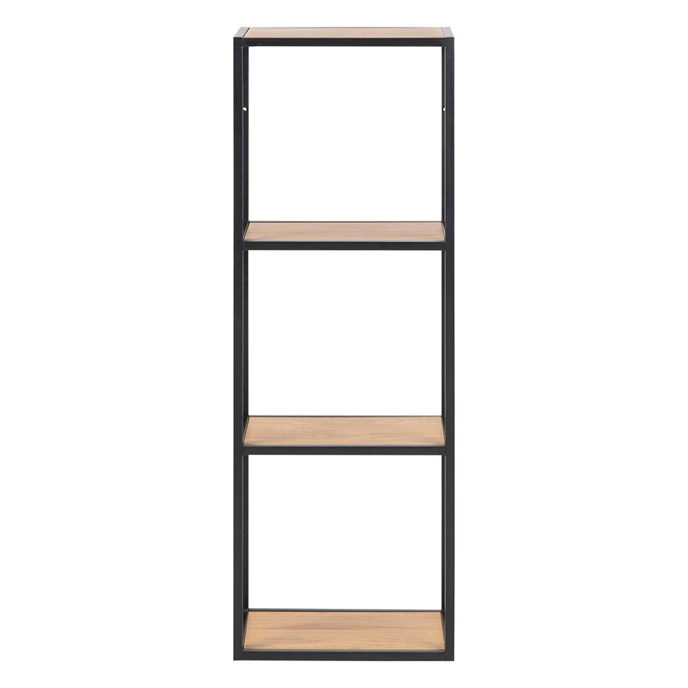 Item Code: 79420 Seaford rectangular wall shelf, frame matt black rough powder coated steel, 4 shelves matt wild oak rough paper. Bring your walls to life by decorating them. This industrial wall shelf is up for the job. Designed with a simple black steel frame and shelves in a wild oak look, it naturally captures attention. The contrasting colours make it easier for decor objects to stand out. Once you put the wall shelf up and decorate it, you will notice that the room gains more depth.Free Delivery