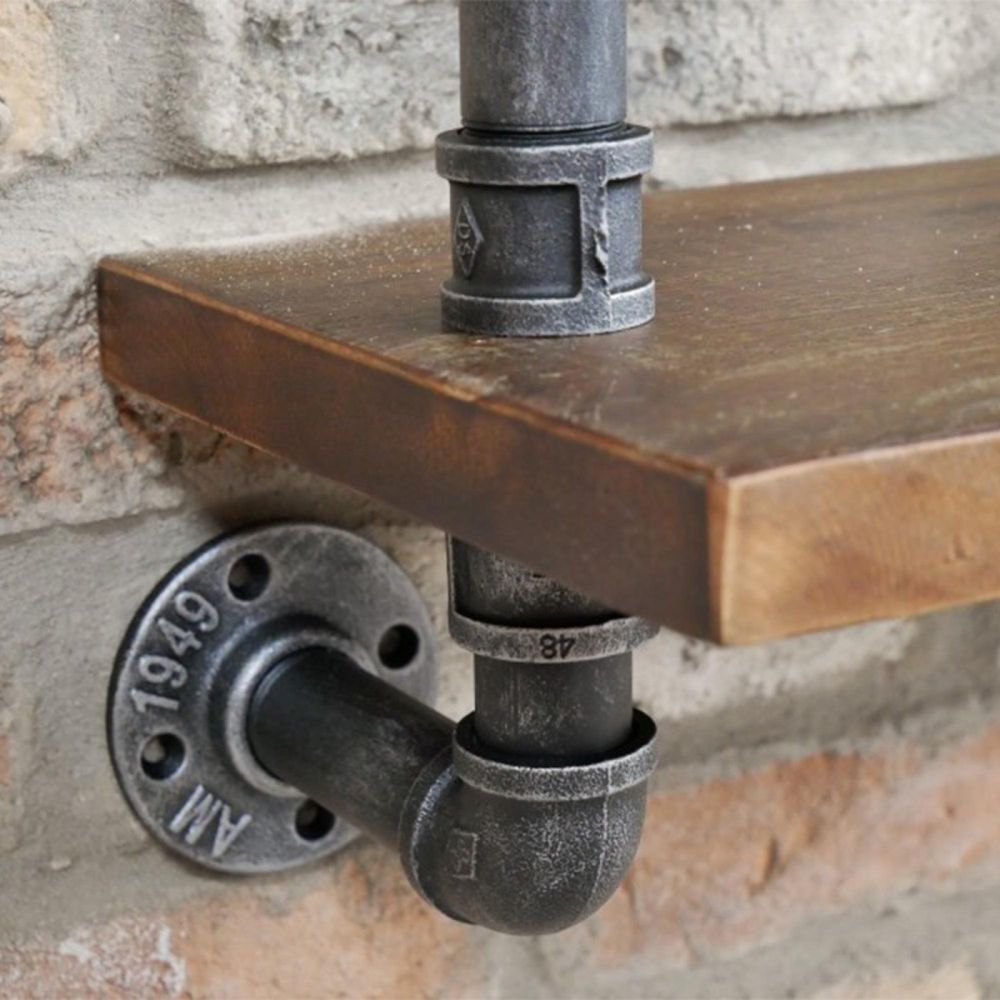 Shelves - Black Metal Pipe - 3 Wooden Wall Shelves
