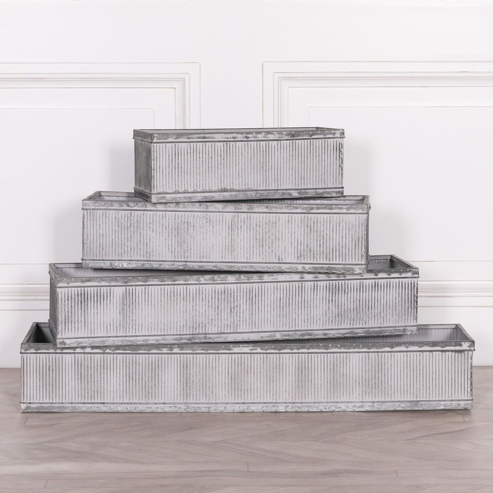 Item Code: TFC523 Extra-large window box planter handcrafted from galvanised steel tin in a distressed vintage style.