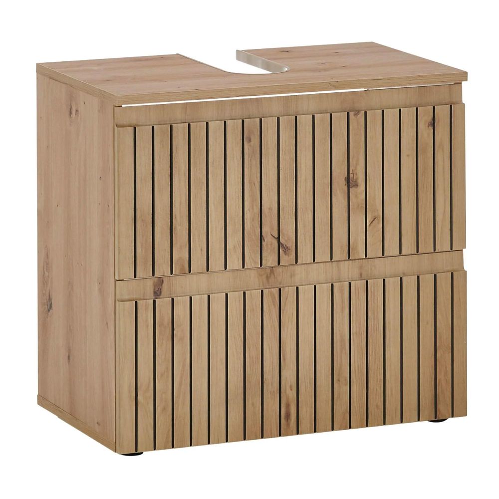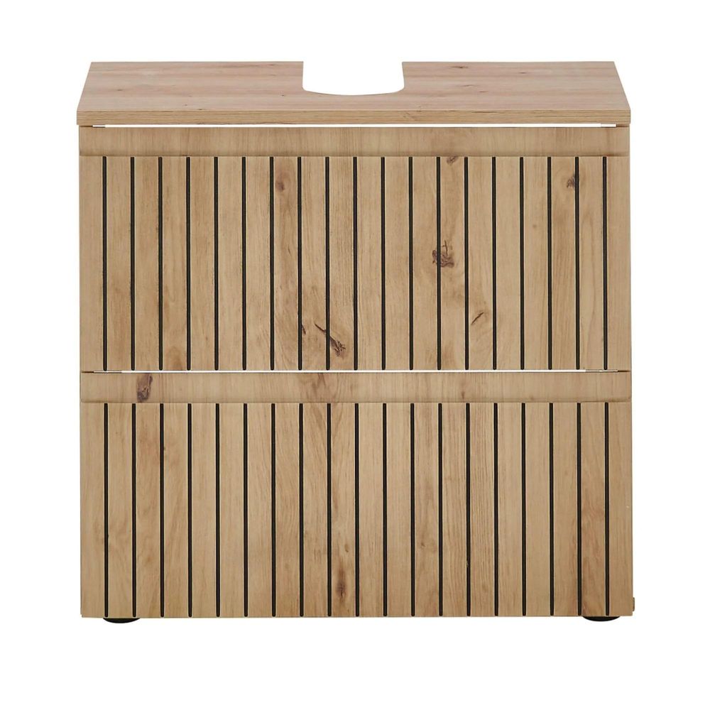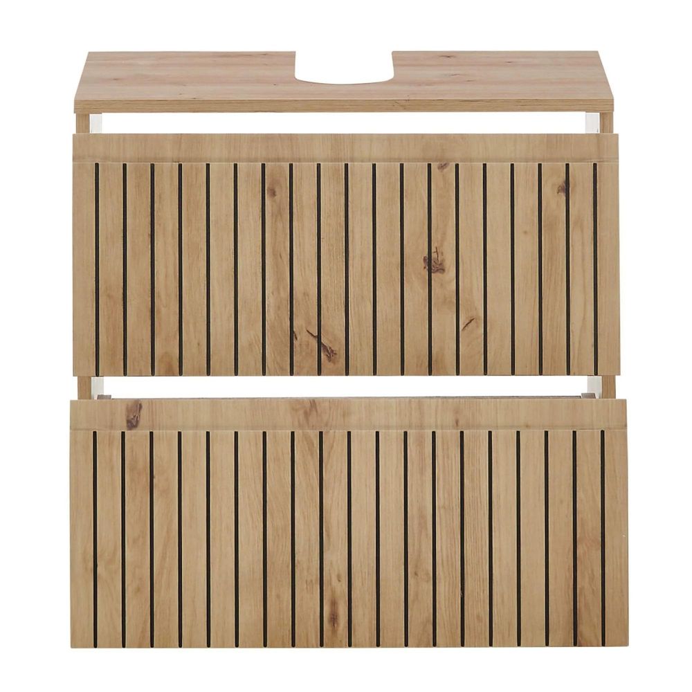Austin Ribbed Oak Under Sink Cabinet - 2 Drawer