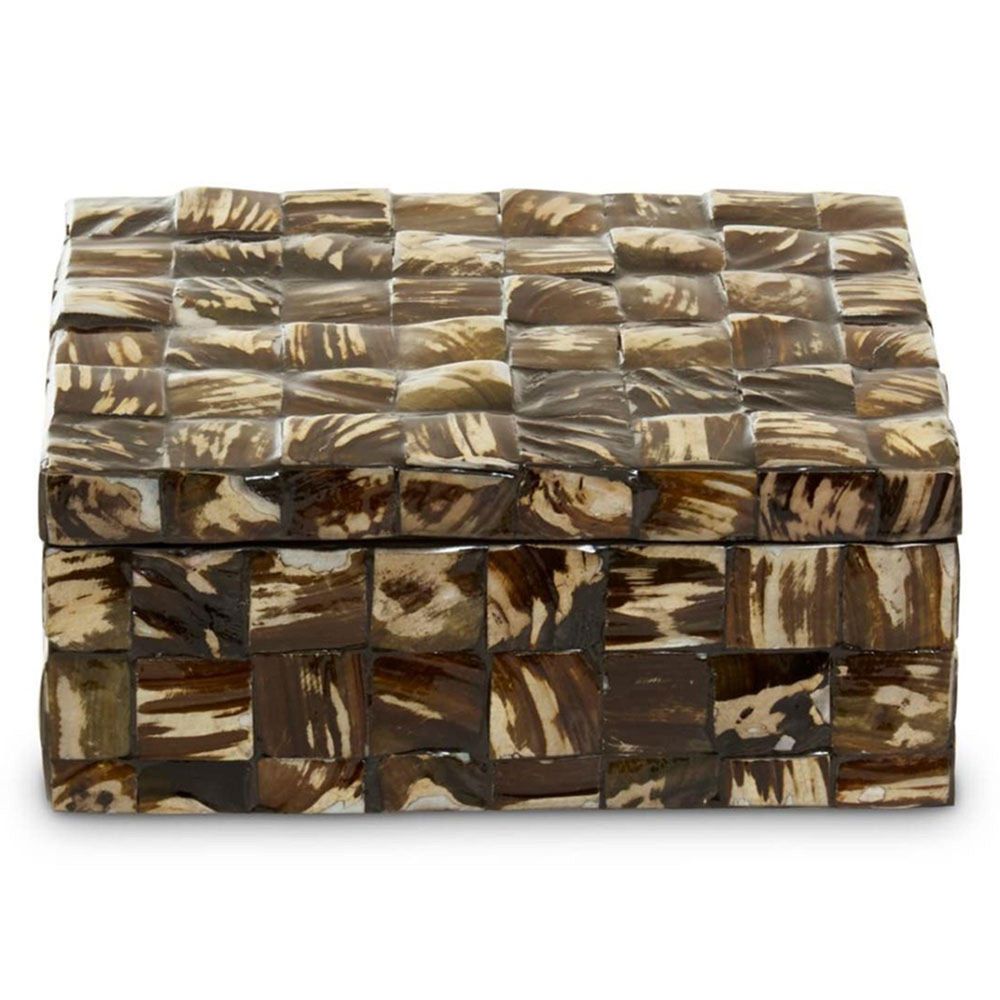 Item Code: 5505953 This large trinket box with natural shell detailing is ideal to display mementoes and keepsakes with a touch of luxury. Embrace the inconsistent beauty of natural materials with the Branna large trinket box. Crafted by hand, the white shell inlay contrasts with the black to create a monochrome effect, making it ideal for eclectic decors.