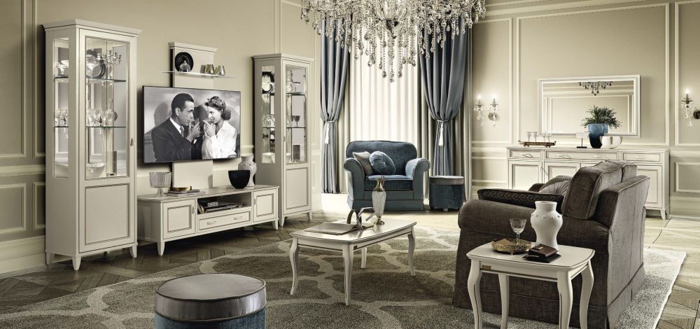 Giotto TV Wall Panel - with Glass Shelf - Bianco Antico