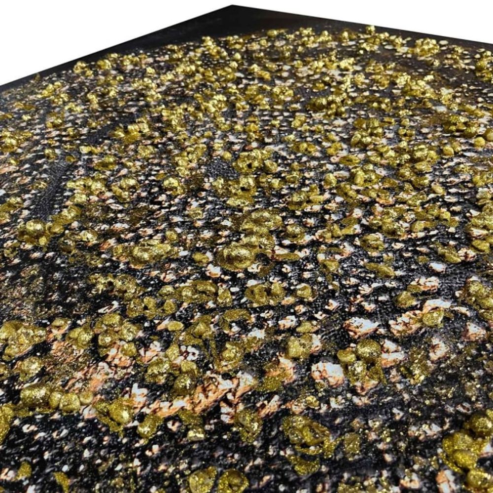 Item Code: CP394-00-BLGD This square wall art features a mesmerizing gold sparkled spiral design set against a striking black texture canvas. The intricate spiral design begins at the center of the canvas and gradually expands outwards in a captivating, mesmerizing pattern. The use of gold sparkles adds a touch of luxury and glamour to the piece, making it a standout addition to any room. The black texture canvas provides a bold backdrop, enhancing the dramatic effect of the spiral design. This stunning square wall art is sure to make a statement and add a touch of elegance to any space.