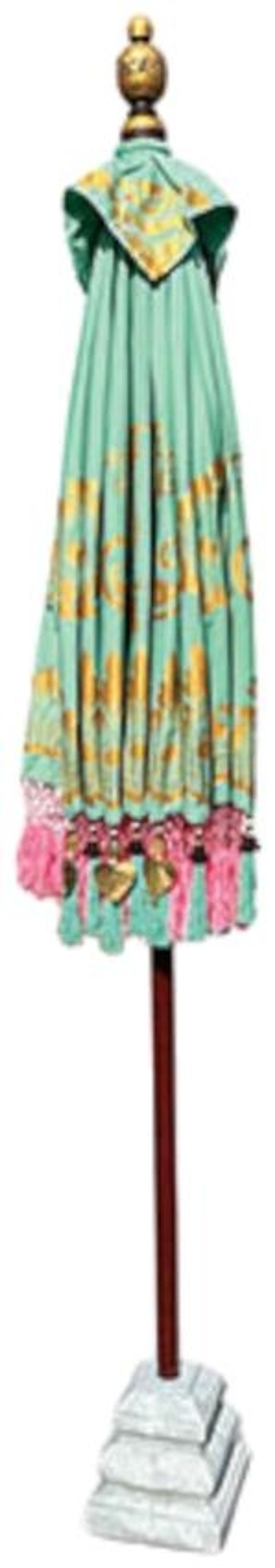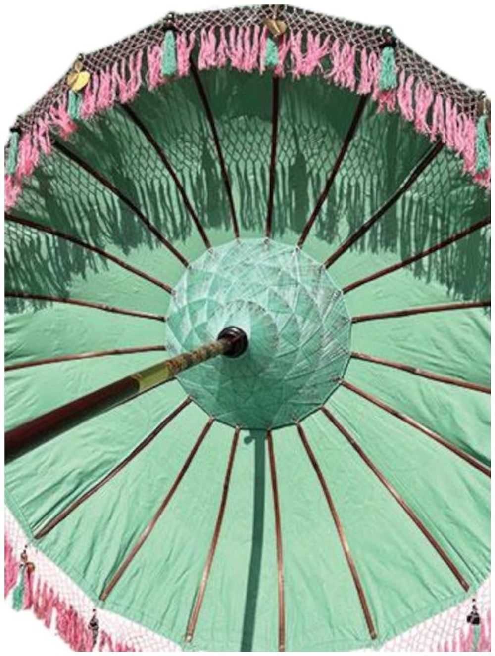 Bali Sun Parasol - Mint Green with Pink Candy Fringe