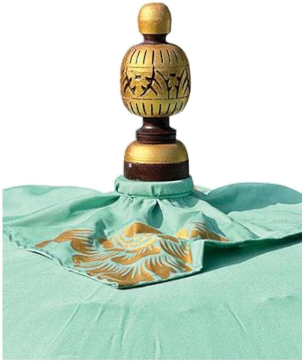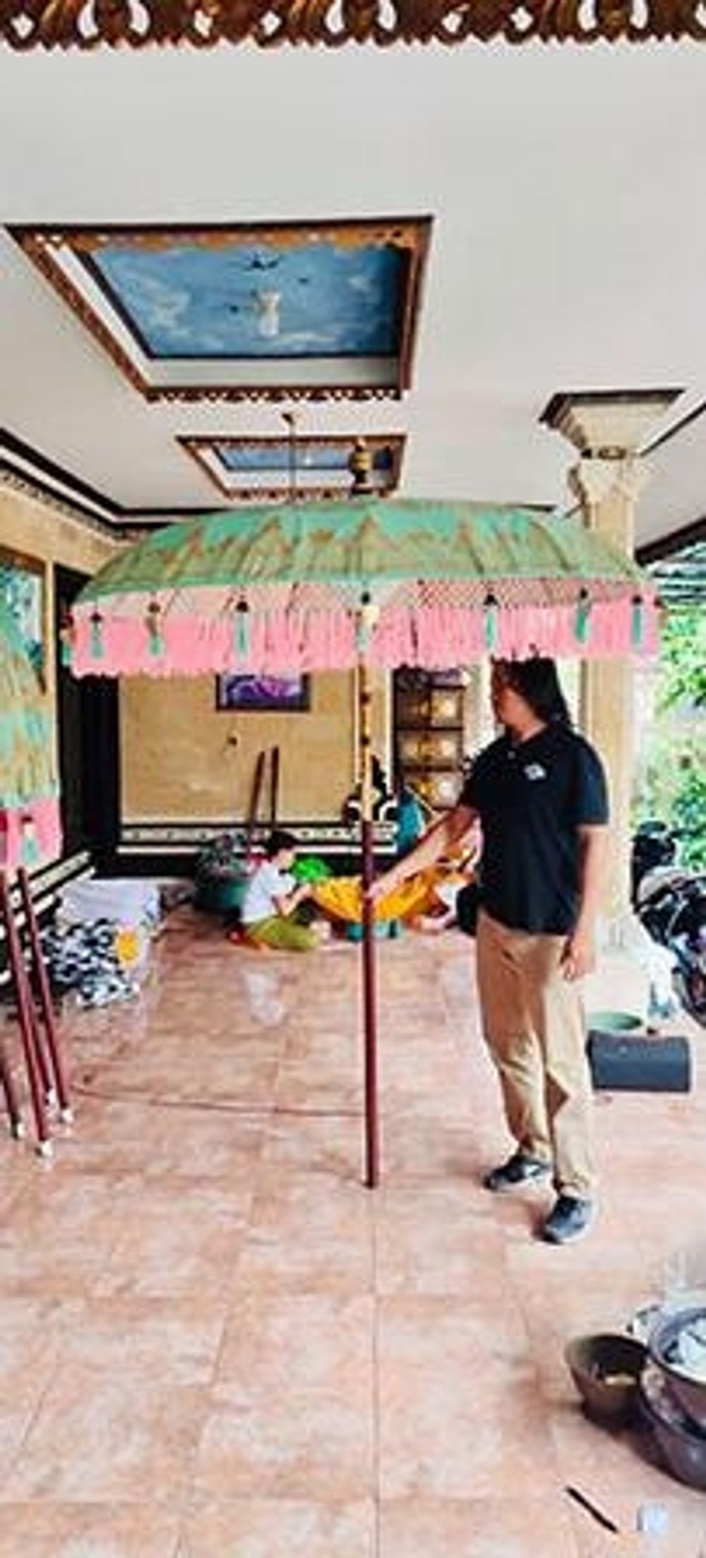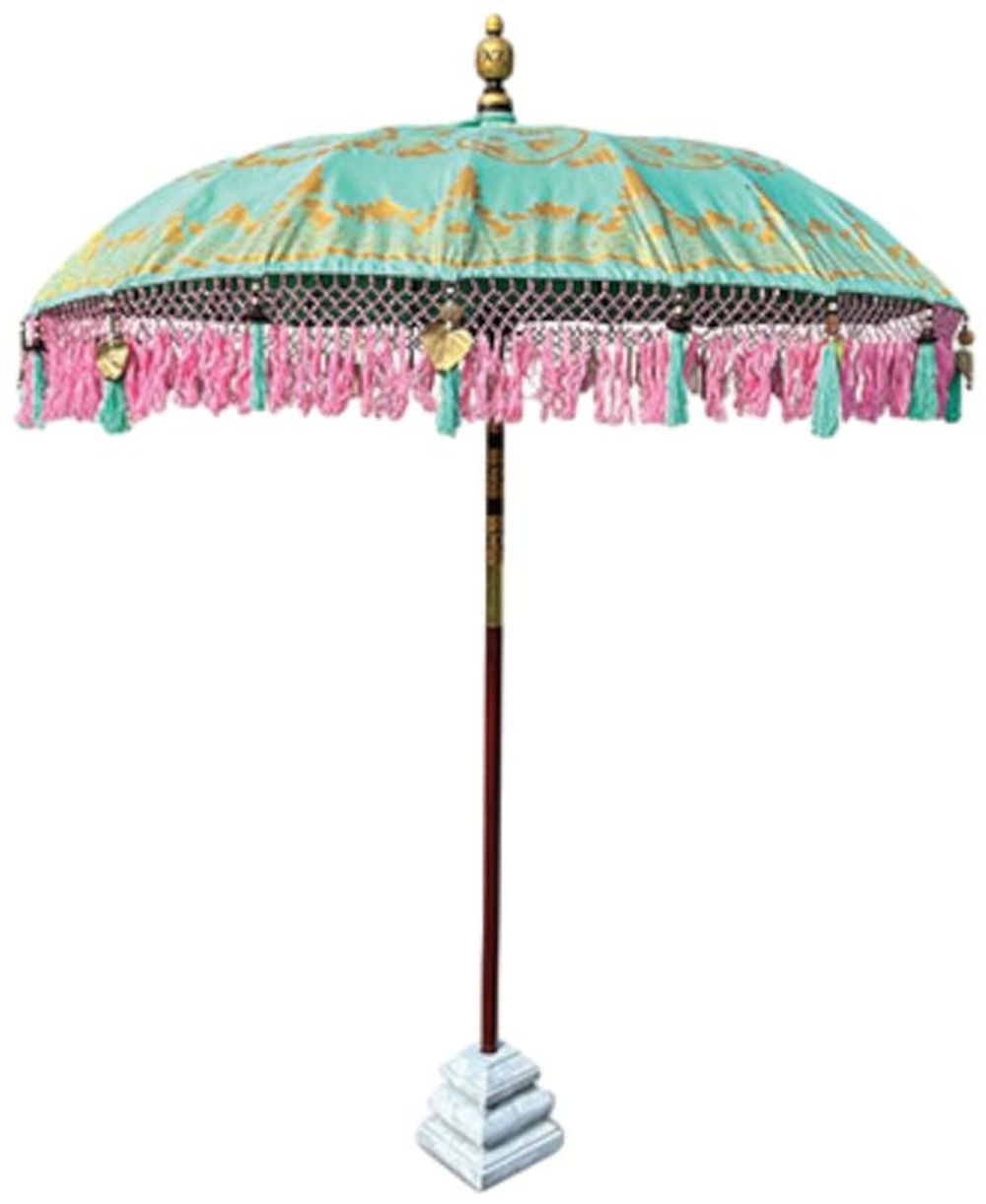 Beautiful hand-made Balinese Ceromonial Parasols - hand-carved, hand-printed, hand-woven and hand-painted by a small family business in Ubud, Bali.PARASOL POLE IS JOINTED FOR EASY STORAGE.Unlike the split pole/wooden peg pole joint system that becomes loose very quickly and damages the joint, we are the only UK wholesaler to use a high quality metal screw fitting on our Bali Parasol pole joints - longer lasting and easier to use.
