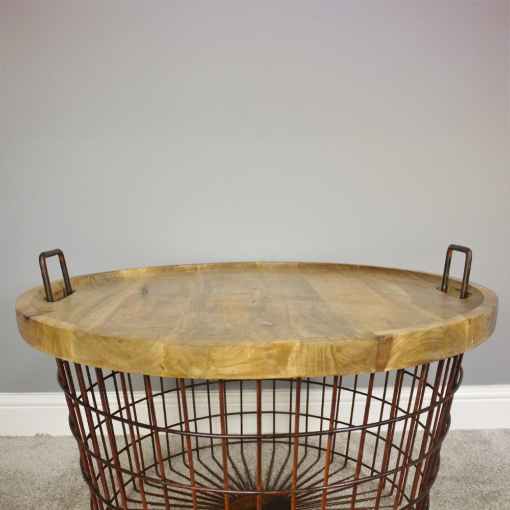 Basket - Rustic - with Wood Lid - Metal & Wood