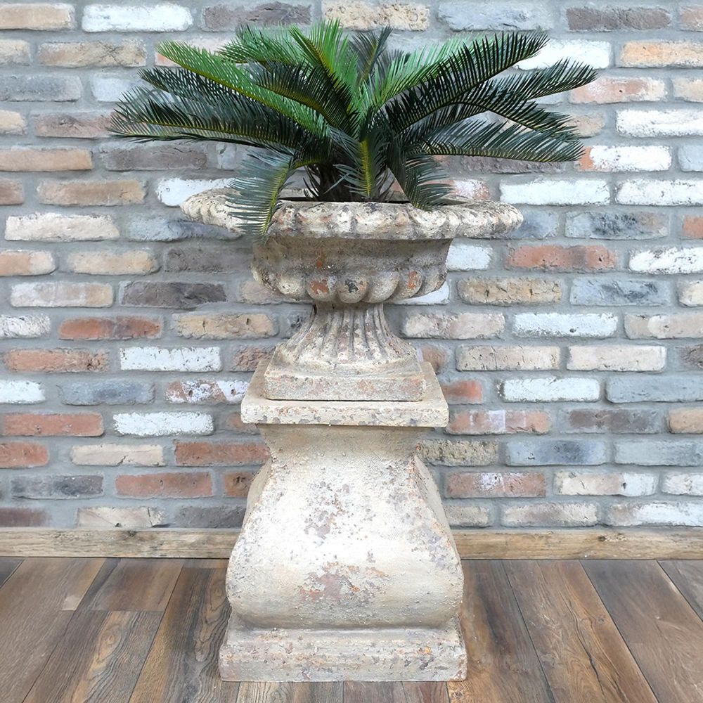 Garden Urn - Pedestal - Plant - Grey - Metal