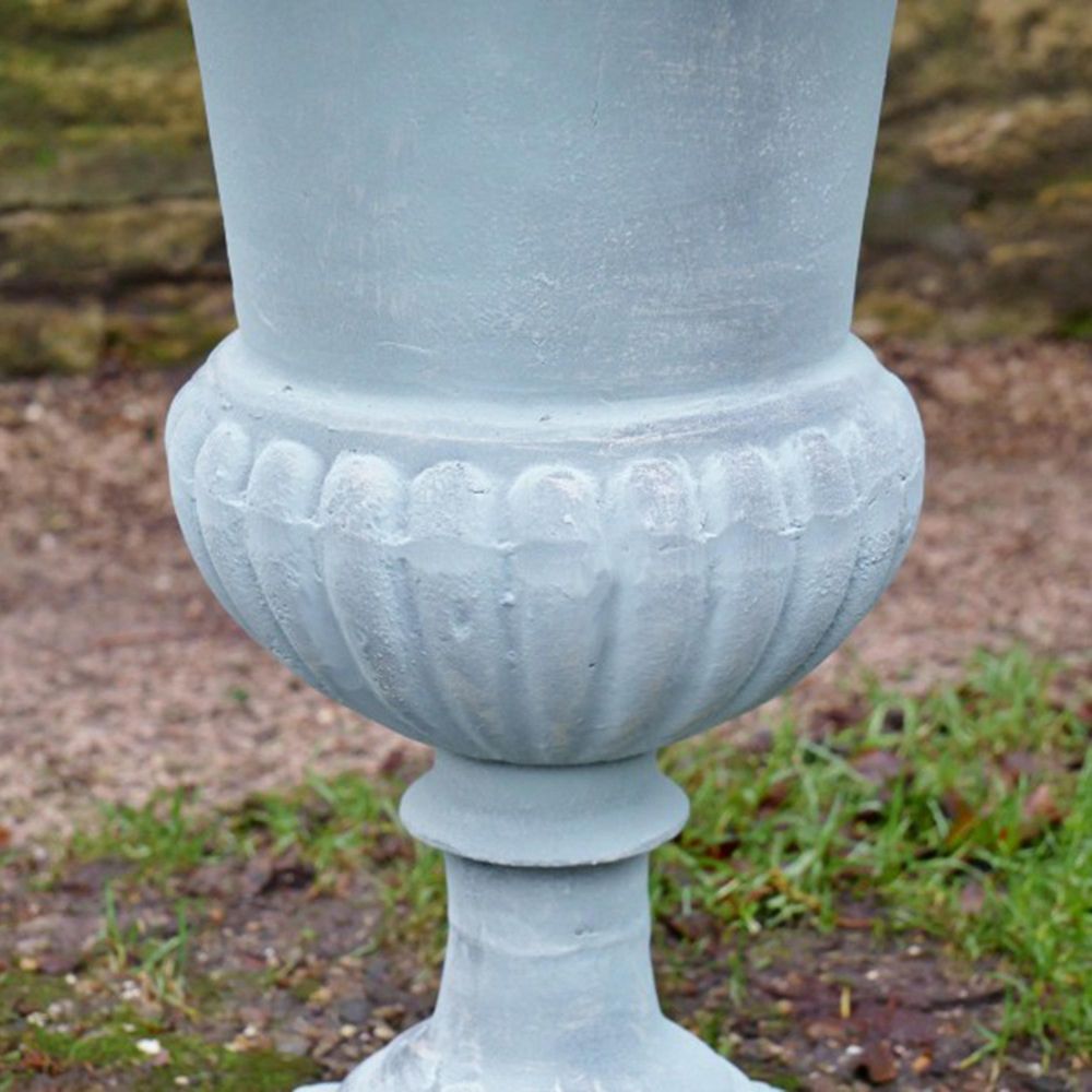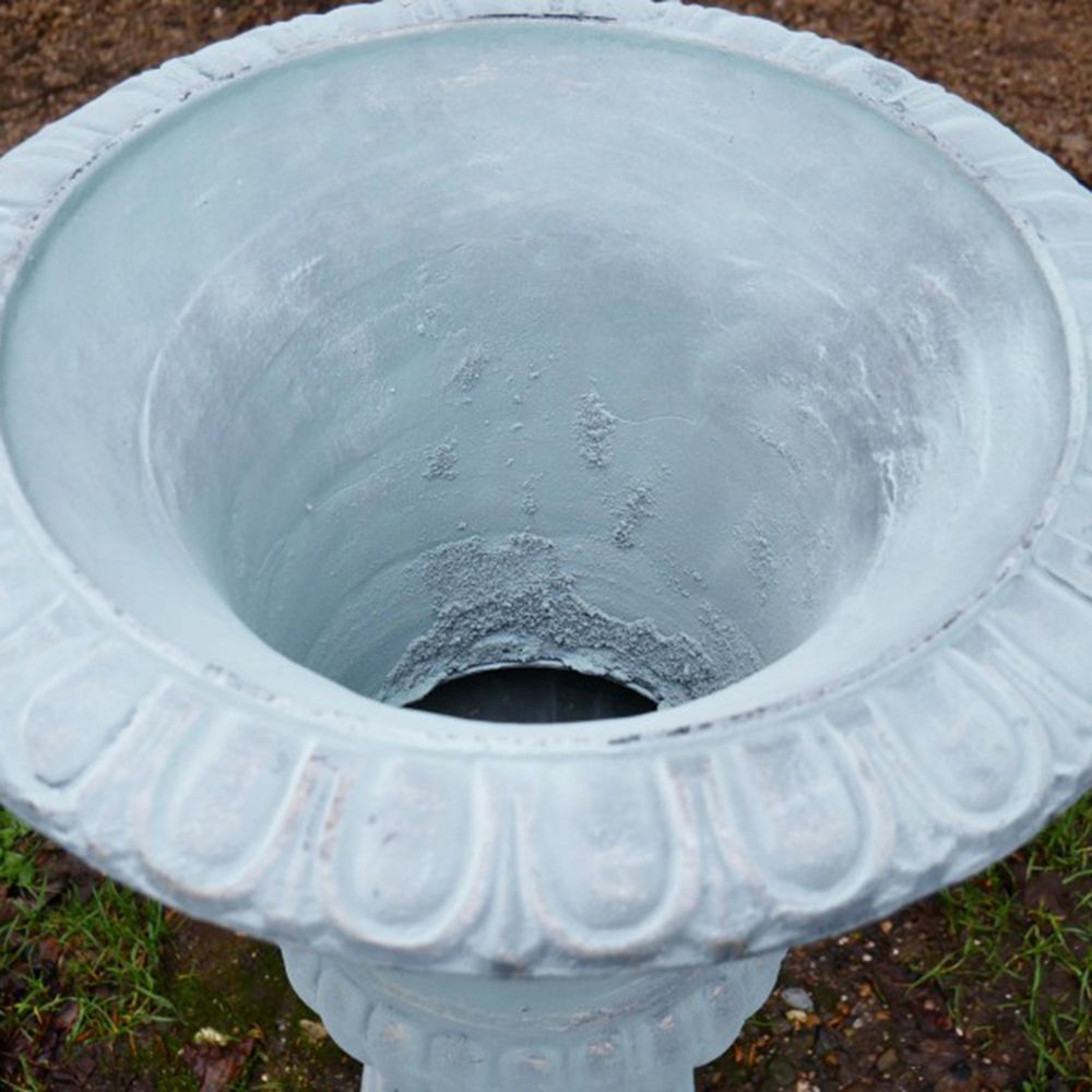Made from cast iron. Price is for the urn only with no base. Old copper finish.