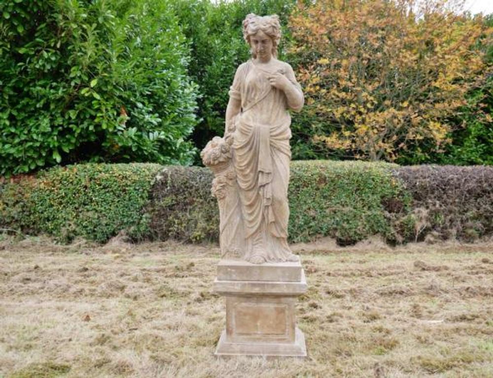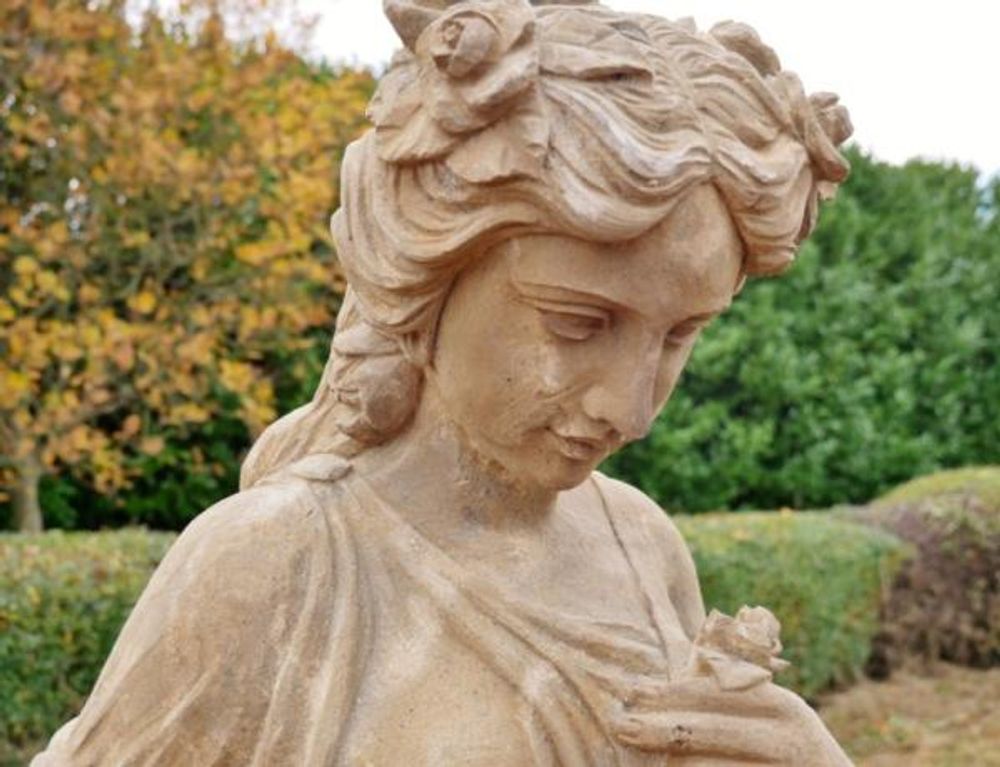 Statue - Hand Carved Stone Lady - with Flowers