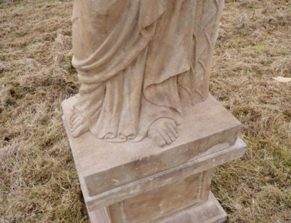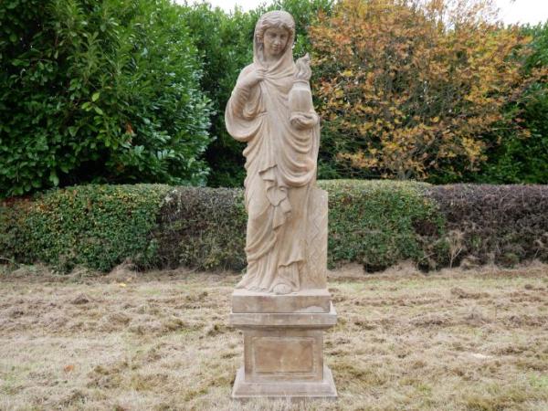 Statue - Hand Carved Stone Lady - with Garden Urn