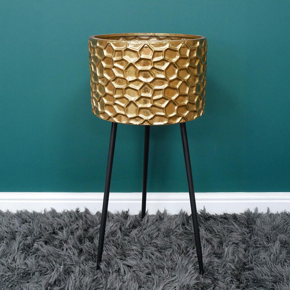 Artificial Flower Planter - Gold - Set of 2 - Resin & Metal