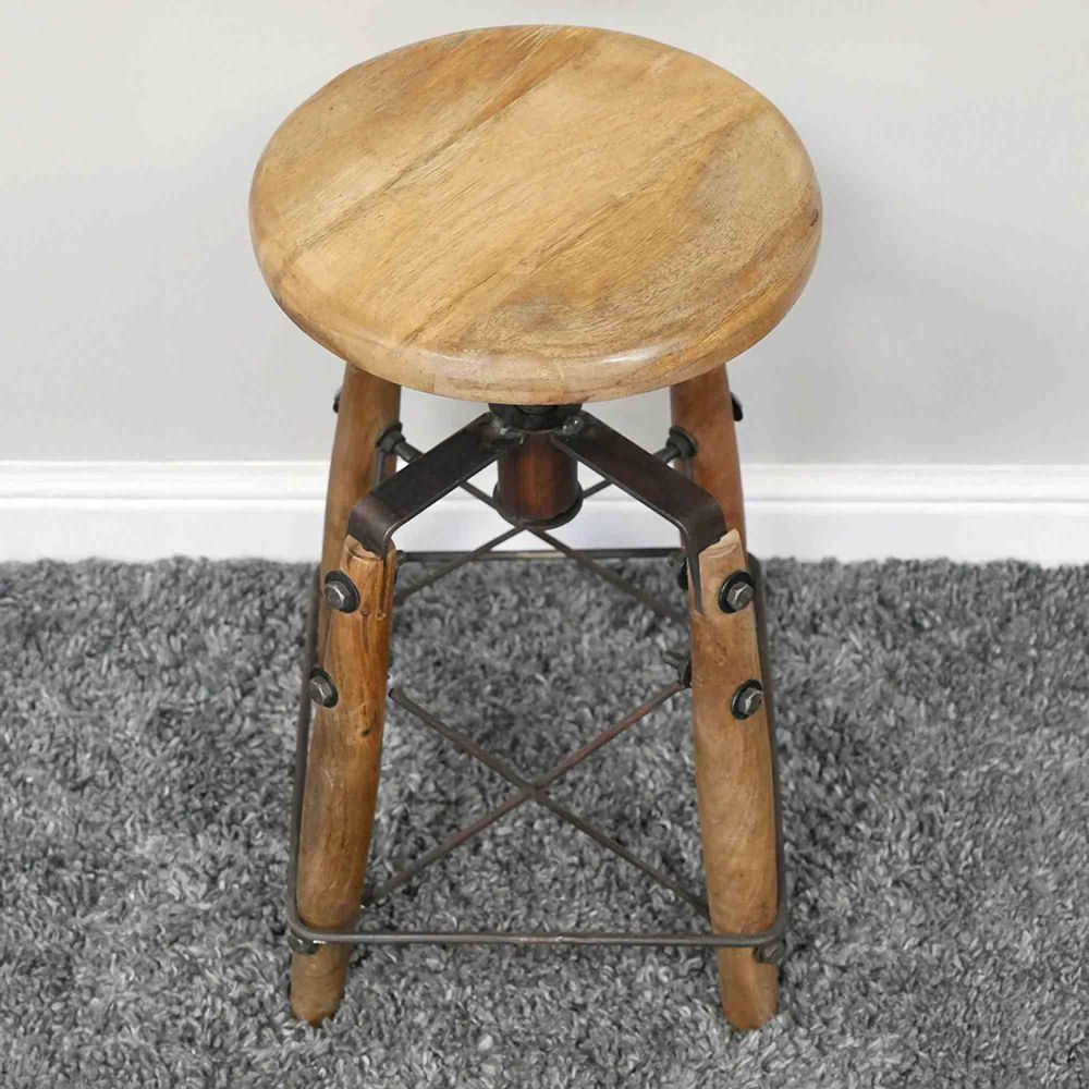 Stool - Adjustable - Round - Industrial Style - Metal