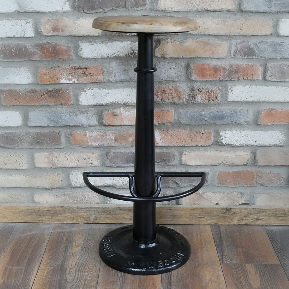 Barstool - Set of 2 - Black Metal and Wood - Round