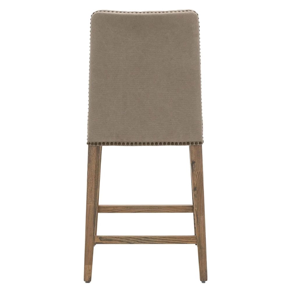 Item Code: G-5059413872679 This item is listed as clearance and available on first come first serve basis once ordered can not be cancelled.et of 2 comfortable and chic bar stools. Upholstered in cement grey linen, these bar stools fit seamlessly into a variety of spaces, from modern to traditional. Finished off with brass nail head details and simple angled legs.