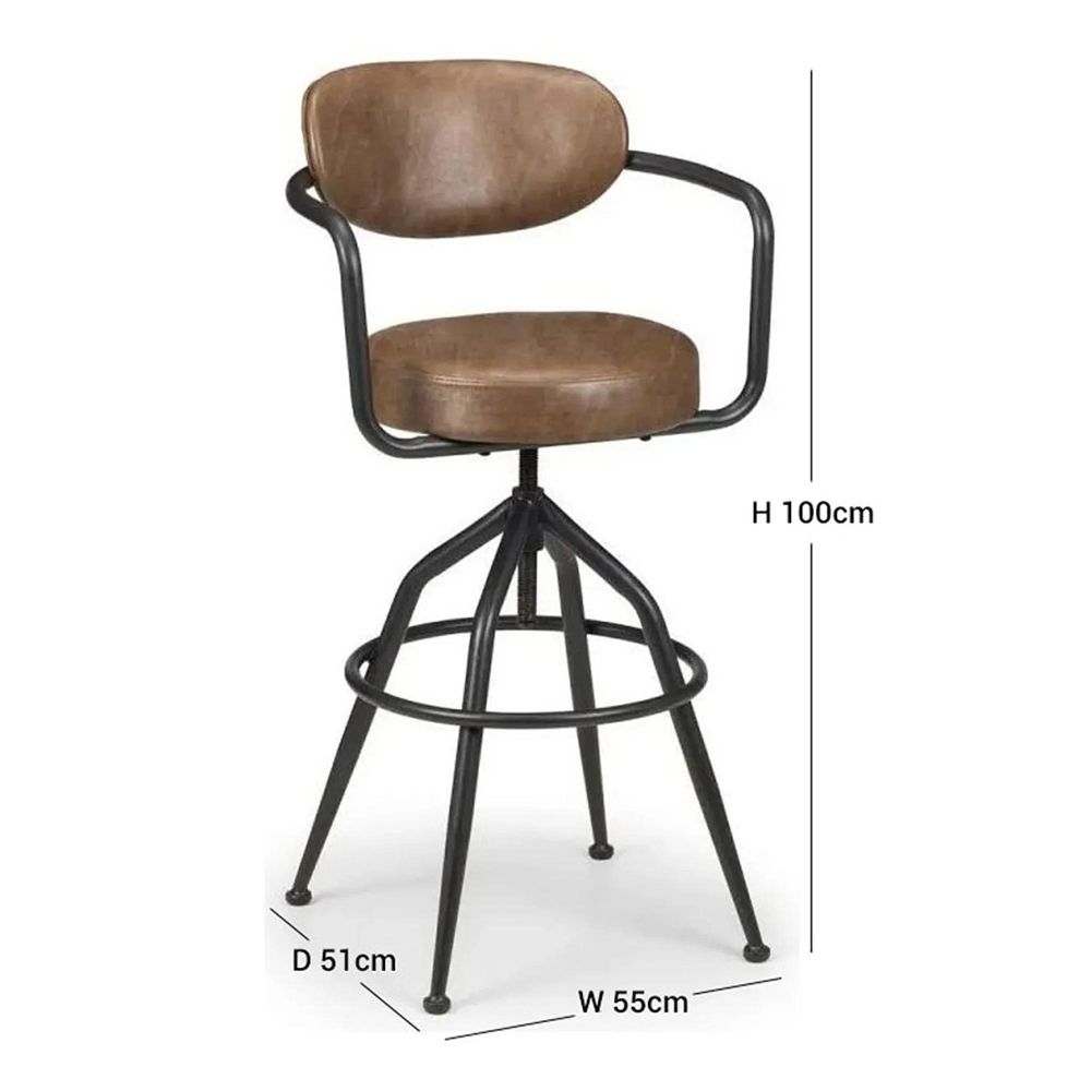 Item Code: BAR301 This item is listed as clearance and available on first come first serve basis once ordered can not be cancelled.The iconic design of the Barbican Barstool is a piece of revived history, influenced by the statement barber chairs, a perfect eye-catching centrepiece for any room. Crafted from a black metal frame with a brown faux leather upholstered seat pad and back rest, this historic, industrial design excels in comfort.