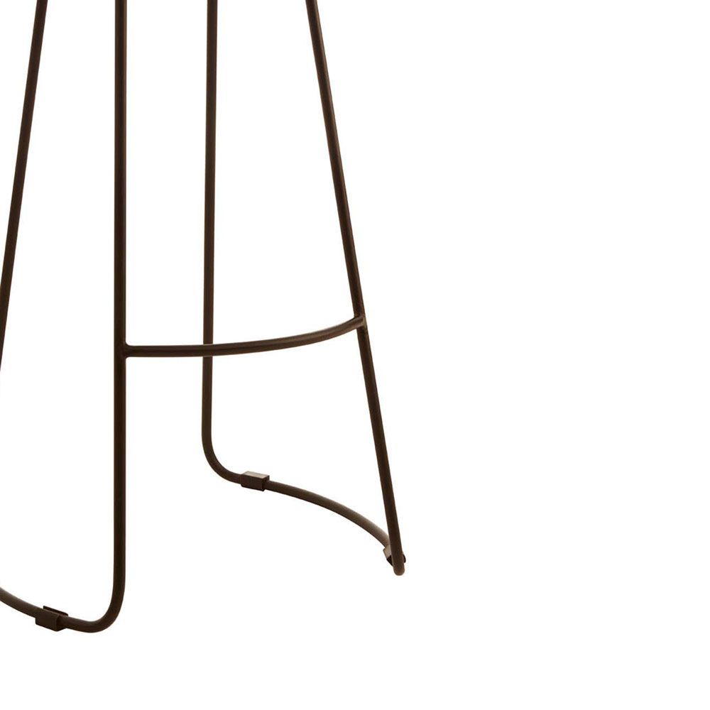 Item Code: 5502990 The seat of this bar stool is upholstered with brown leather and sports a fluted finish that accentuates its outline. With its long, slim legs and tapered seat, the Buffalo bar stool's elegant silhouette is sure to elevate its surroundings.The legs are made from iron, are coloured black, and incorporate a footrest at the front.