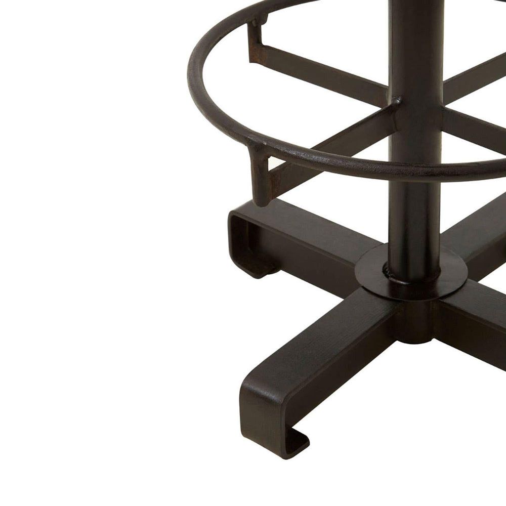 Item Code: 5501582 This brown leather and iron stool adds sophisticated loft design to the kitchen bar area. The luxury Buffalo stool uses soft natural leather to upholster its round seat. Its tall cylindrical stand is made from tough iron, with a black finish that complements the brown leather. Four chunky feet at its base keep it stable, while the wide round footrest with latticed ironwork adds to the comfort.