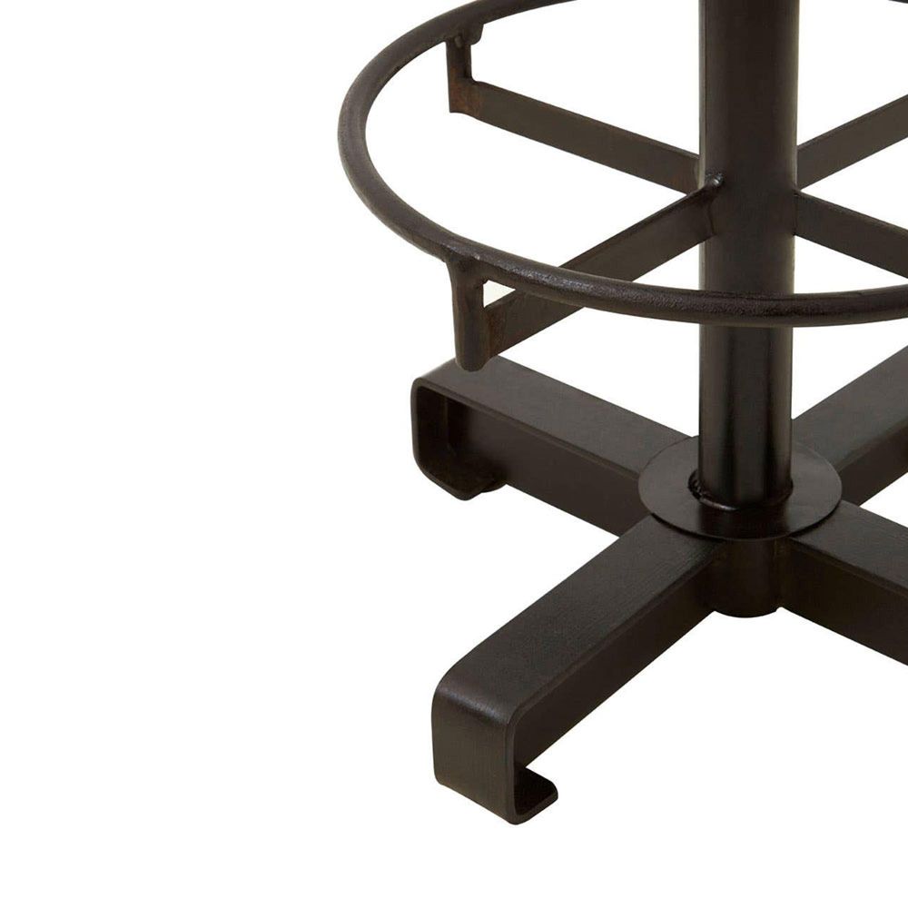 Item Code: 5501583 This leather and iron stool adds sophisticated loft design to the kitchen bar area. The luxury Buffalo stool uses soft natural leather to upholster its plump round seat. Its tall cylindrical stand is made from tough iron, with a black finish that complements the light brown leather. Four chunky feet at its base keep it stable.
