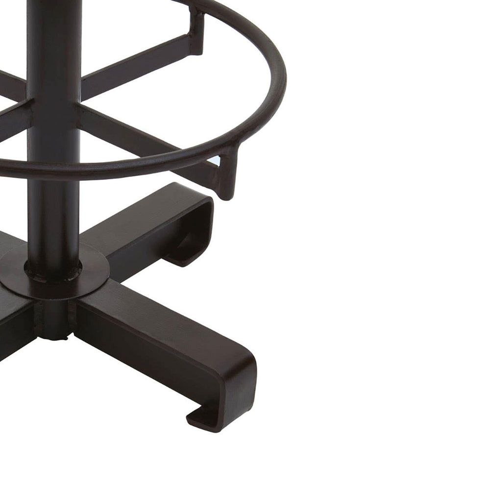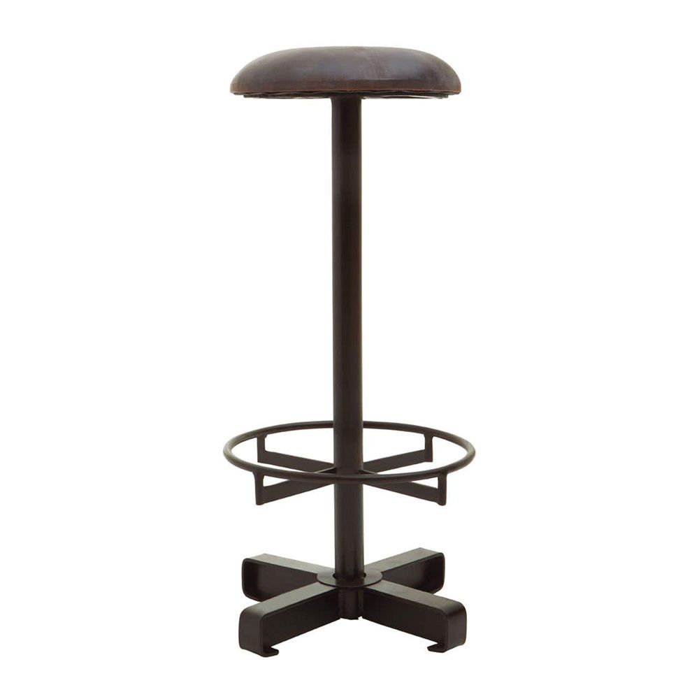 Item Code: 5501585 This blue leather and iron stool adds sophisticated loft design to the kitchen bar area. The luxury Buffalo stool uses soft natural leather to upholster its plump round seat. Its tall cylindrical stand is made from tough iron, with a black finish that complements the antique blue leather. Four chunky feet at its base keep it stable, while the wide round footrest with latticed ironwork adds to the comfort.