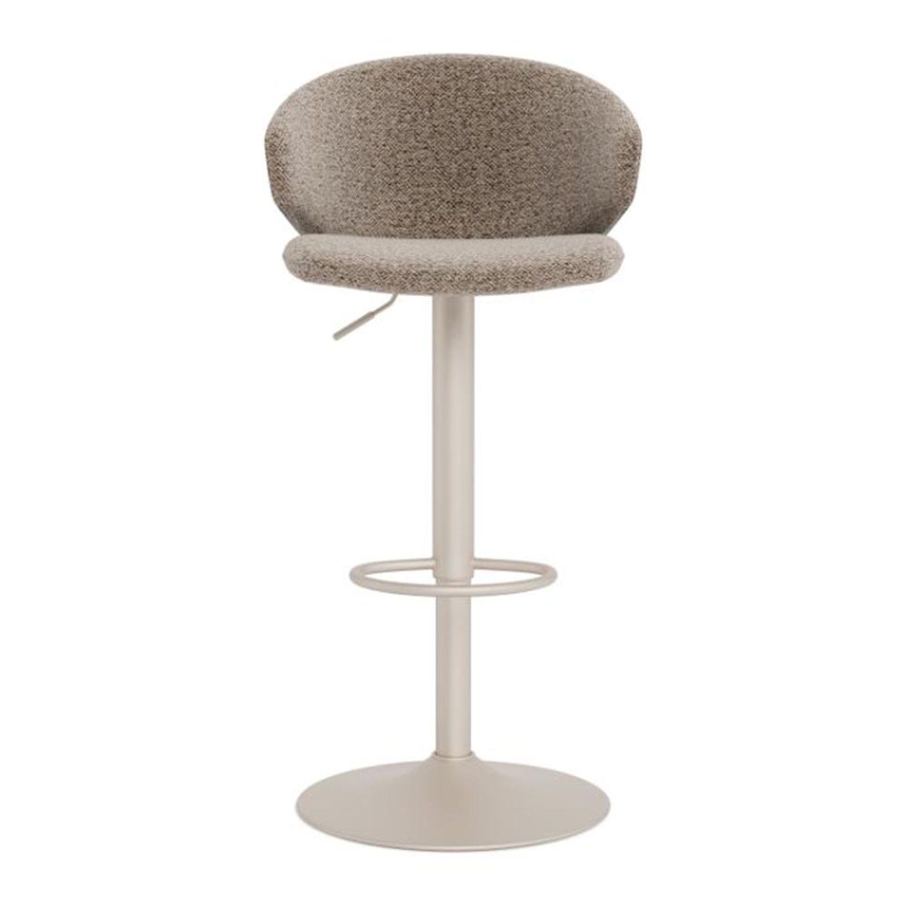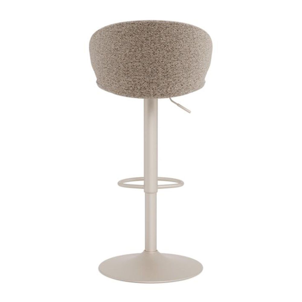 Item Code: 109561 Ella bar stool, Monza fabric beige 60 FR, trumpet base grey rough powder coated steel with footrest, gas lift, handle and swivel, box 2 pcs. What stands out about this bar stool is its elevated sophistication. Featuring a short, curved back and inviting seat, this height-adjustable bar stool is pleasant to sit in and to look at. The beige boucle-like fabric and grey trumpet base, enhanced by swivel function and footrest, make it a modern seating option that complements any home. FSC certified.Free Delivery