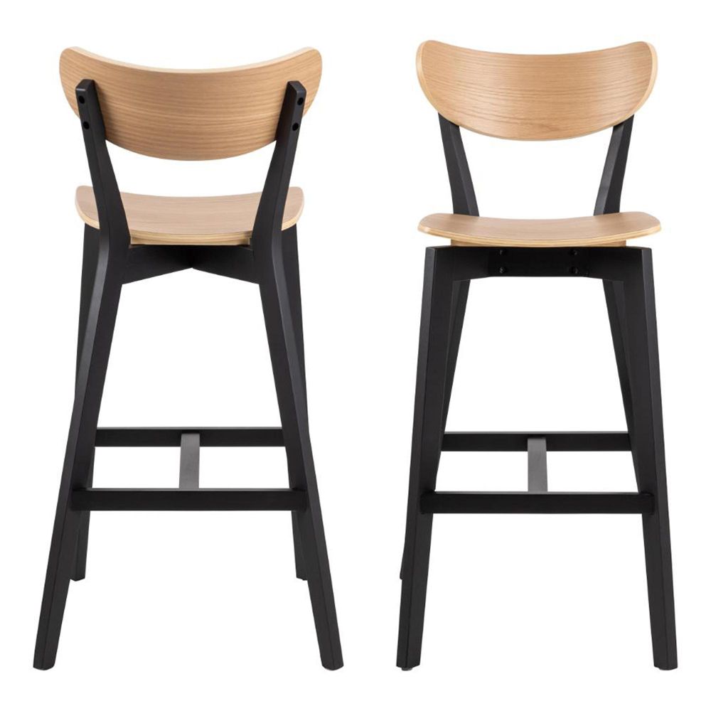 Roxby Barstool - Set of 2 - Oak and Black - with Back