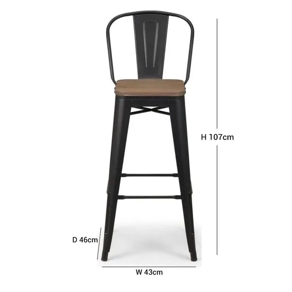 Grafton Barstool with Back - Set of 2 - Elm Wood - Industrial