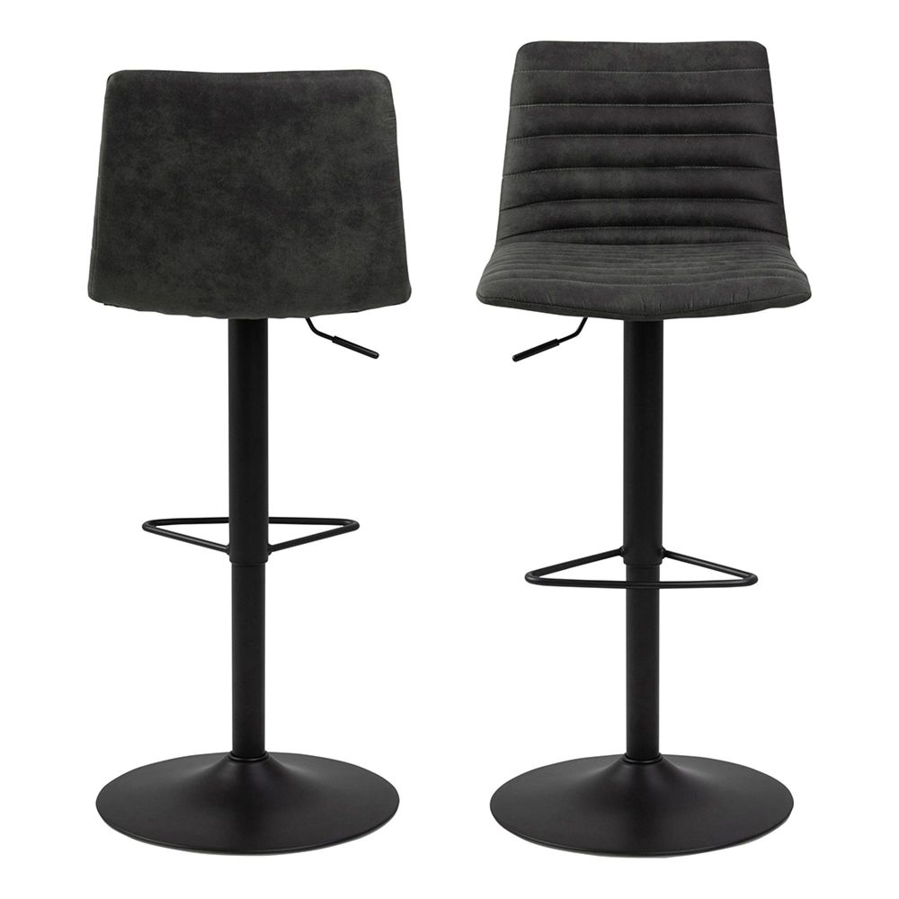 Item Code: 96068 Enhance your modern lifestyle with this pair of bar stools! Made from robust metal and upholstered with soft fabric, they feature a gas-lift cylinder you can adjust to your ideal height. With a stylish square seat and sleek metal base, these stools in Preston Anthracite gray will add a touch of style to your kitchen or bar.