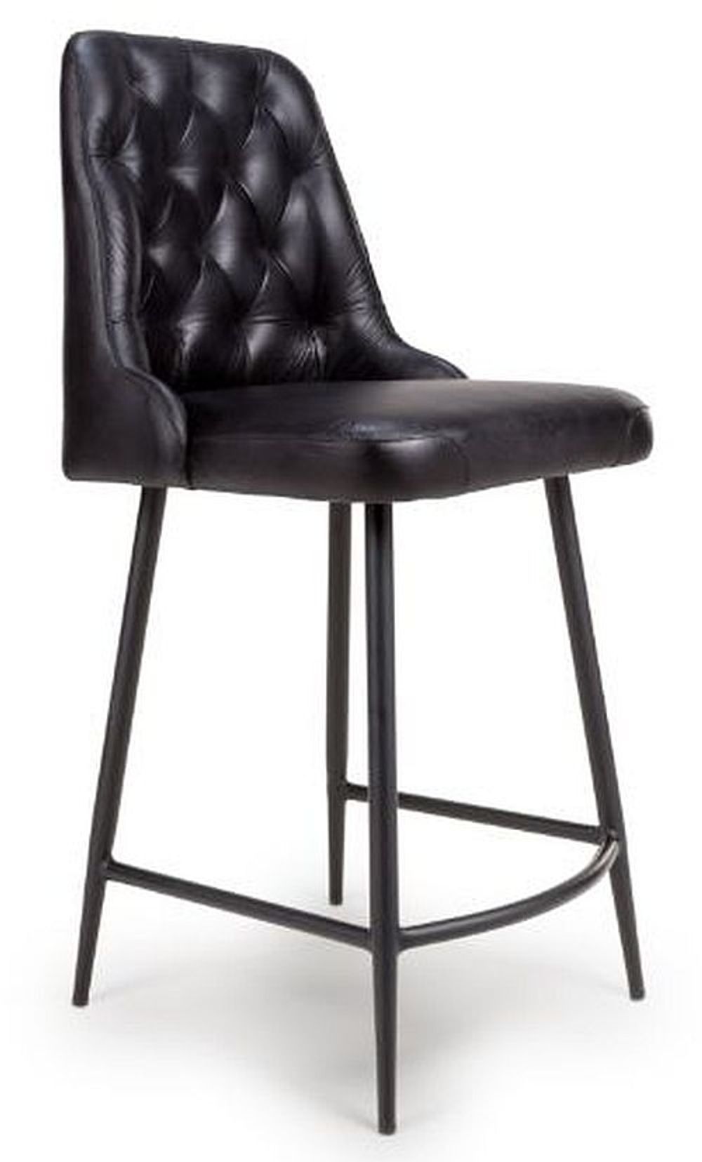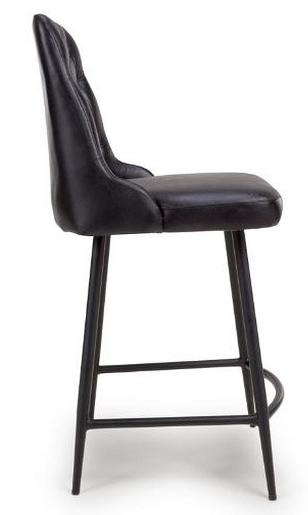 Item Code: BRA-240-BK These luxurious counter stools feature genuine buffalo leather over sturdy metal frames. Generously cushioned seats for comfort, each stool is upholstered in black delivering a timeless look that complements any home décor. With its modern styling and slim profile, it is perfect for any bar setting. Sold in pairs, these stools bring the perfect balance of elegance and comfort.
