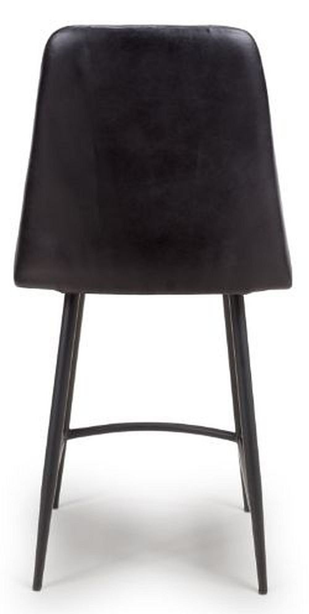 Bradley Counter Stool - Set of 2 - Black Real Leather - with Back