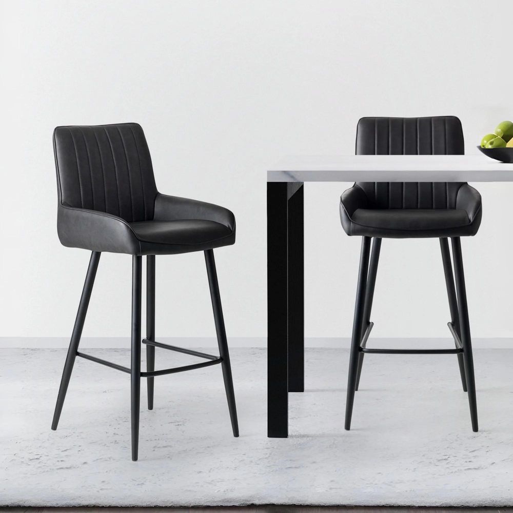 Item Code: SOH003 This retro Soho barstool is finished in an antique black faux leather with a striking black metal frame, sure to compliment any contemporary d?cor. The perfect addition to any dining or bar area to create an industrial, retro feel within any space.