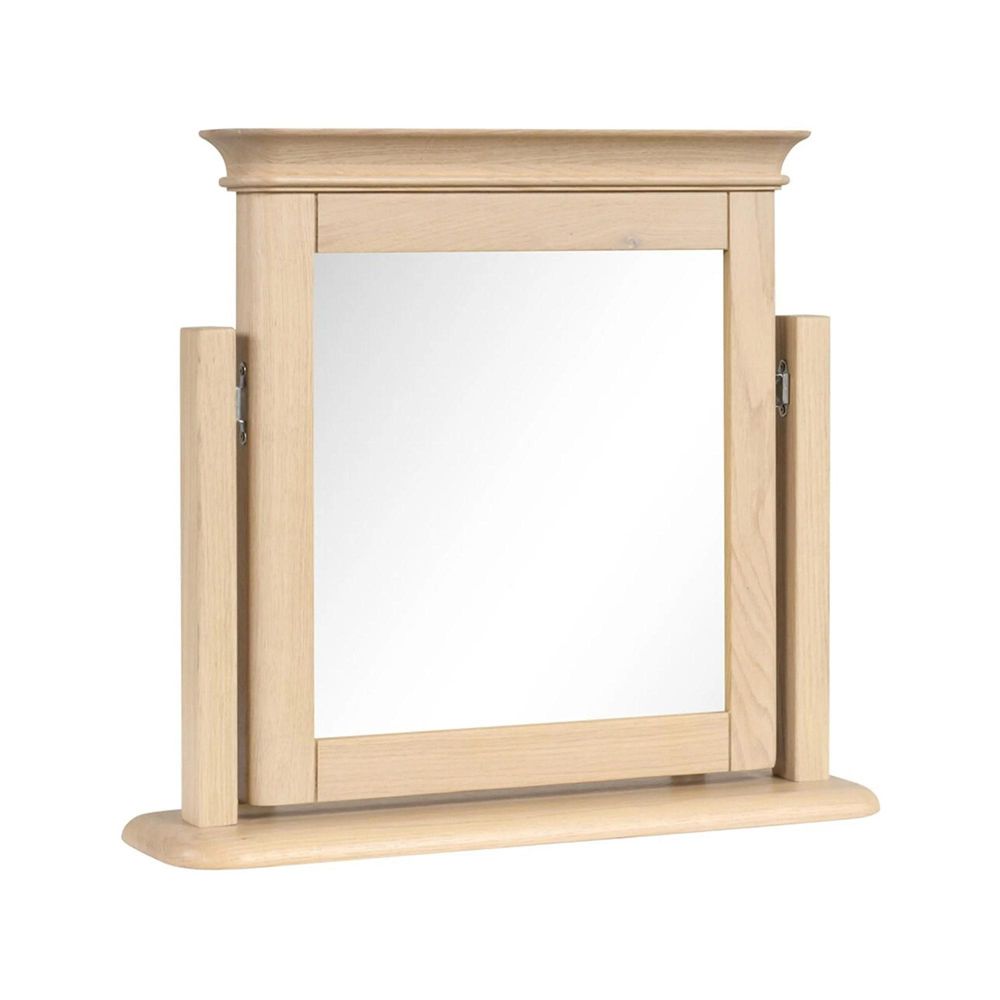 Bring refined style and practical function to your bedroom with the Romford Oak Dressing Mirror. Designed as part of the Romford Oak collection, this mirror pairs seamlessly with the dressing table, chest of drawers, bedside cabinets, and wardrobes, creating a cohesive and sophisticated look. Its clean, pale oak finish, rounded base, and pivoting arms make it both functional and stylish, offering the perfect combination of elegance and everyday practicality.