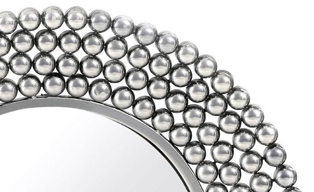 A wonderful feature in your home, the striking design of our Templar mirror is accentuated by its beaded frame, that will reflect style and light into your room. Made from robust iron and given a silver finish, the round frame features hundreds of individual beads that are welded together, bringing focus to the mirror. A fantastic feature on your bedroom, dining room or living space wall, the mirror gives the illusion of space, helping open up the room. Complementing most decors, the chic Templar mirror will provide your home with a functional and fashionable accessory. This item is handcrafted so please expect slight variations to the finish.