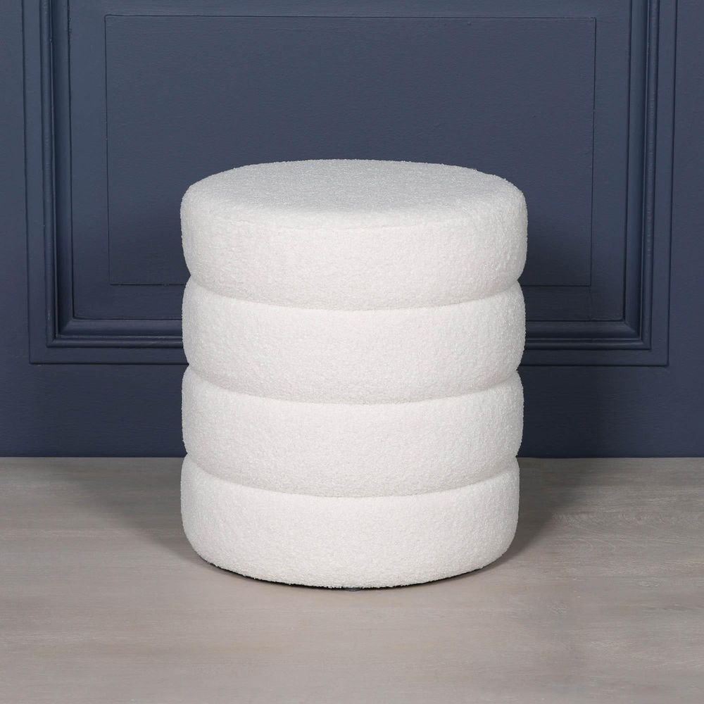 Beehive Round Stool - White Boucle Fabric