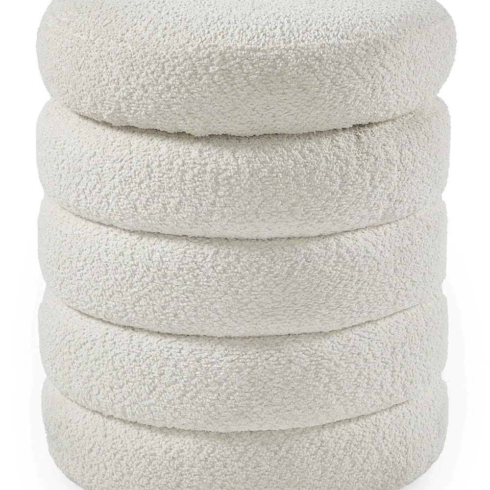 Item Code: HAI001 Wrapped In Soft Ivory Boucle, This Compact Storage Stool Offers A Refined Balance Of Comfort And Function. Its Gently Rounded Shape And Tactile Fabric Bring A Relaxed, Elegant Feel To Any Space. The Cushioned Lid Lifts To Reveal A Discreet Compartment, Perfect For Storing Blankets, Throws, Or Everyday Items Neatly Out Of Sight. Whether Used As A Subtle Accent Or A Cosy Footstool, It's A Practical Piece With Timeless Appeal. No Assembly Required.