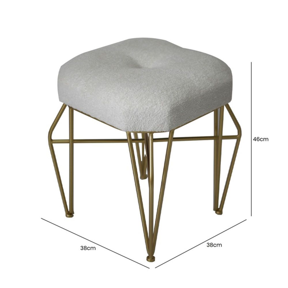 Item Code: FN173-00-WHGD The White Boucle Stool with Gold Legs is a stylish and sophisticated furniture piece. Featuring a chic white boucle upholstery and elegant gold legs, this stool exudes contemporary charm and adds a touch of luxury to any space. Its sleek design and comfortable seating make it a versatile addition to modern interiors, combining comfort with an eye-catching aesthetic.Free Delivery