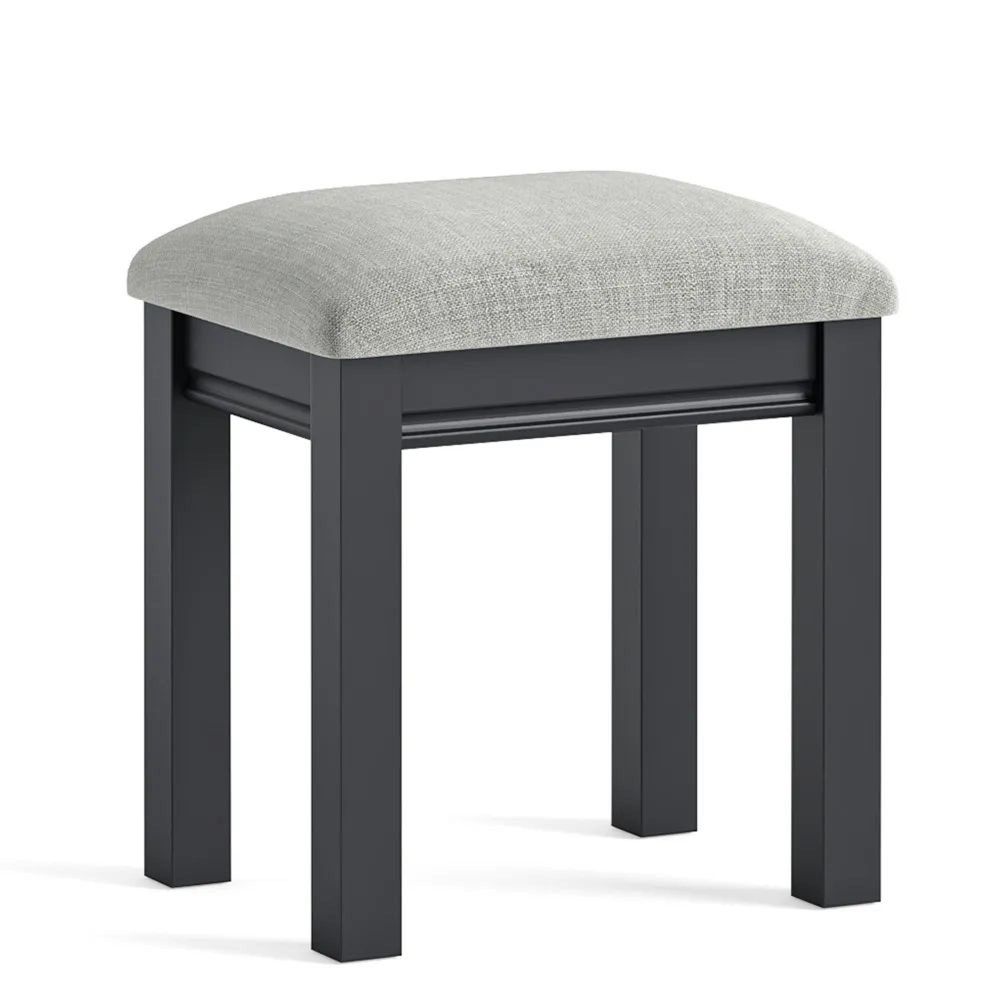 The Bordeaux Charcoal Padded Dressing Stool is a beautifully crafted accessory designed to complement the elegance and practicality of the Bordeaux dressing table range. Built from solid wood and finished by hand in a rich charcoal tone, this stool offers both durability and refined style, embodying the timeless craftsmanship of the Corndell Bordeaux Collection.