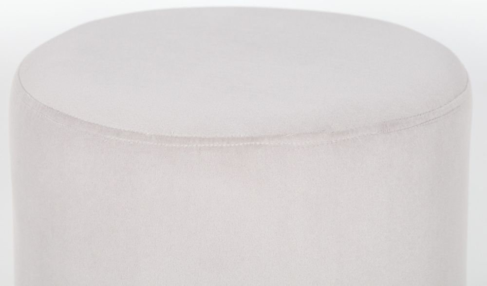 Item Code: AV131 This plush round stool adds a cozy touch to any home. Upholstered with a light grey velvet fabric, its sleek design makes it perfect for adding extra seating in any living space. Sturdy and comfortable, this stool features a round seat and is ideal for creating an inviting atmosphere.