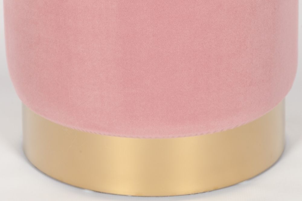 Item Code: AV130 This beautiful round stool will be a perfect addition to your furniture. Covered in luxurious velvet fabric, this stool features a soft pink color that will easily match any room décor. Its convenient round shape allows for flexible placement beneath a window, side table, or bed. This sturdy construction will provide much needed support while providing a touch of elegance and style.