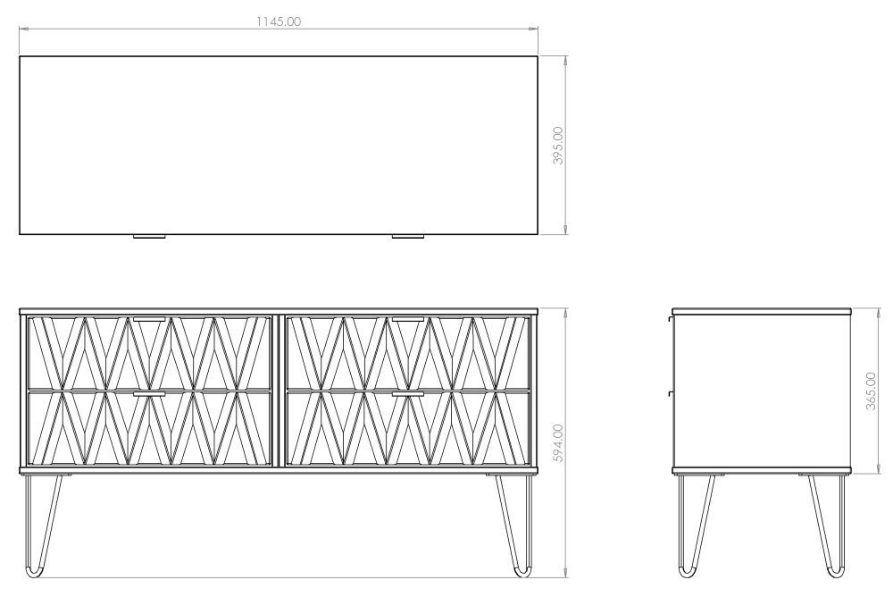 Diamond Oak Effect Bed Box with Gold Hairpin Legs