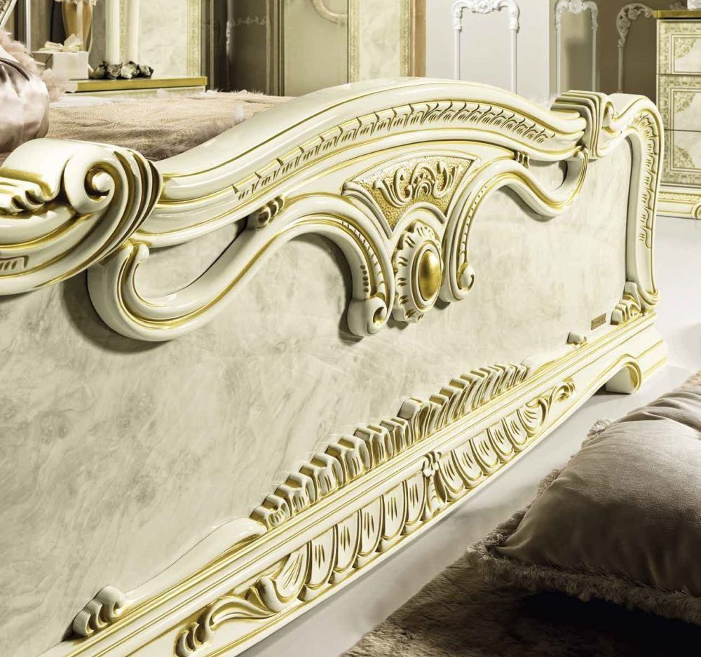 Item Code: 137LET.01OP/000RET.67O Pouf, toilet and headboard cushions are upholstered with a rich golden material.Leonardo bedroom baroque elements are embellished with gold antique finishes performed by skilled craftsmen.Leonardo bedroom completes a collection in which the baroque style and classic lines combine to create an environment that evokes the splendor of the 1600 palaces. Gold details on ivory high gloss panels and arabesque decorations with Art-Deco handles make this room an obvious choice for those who love classic timeless atmosphere.This is a Made to Order itemAll Made to Order items are manufactured as per the order supplied by you.We are unable to accept cancellation or accept any extra cost that may incur due to wrong information provided by you at the time you placed the order.We will confirm all sizes/colours/finishes in written email (order confirmation) with you before going ahead with production of your order.