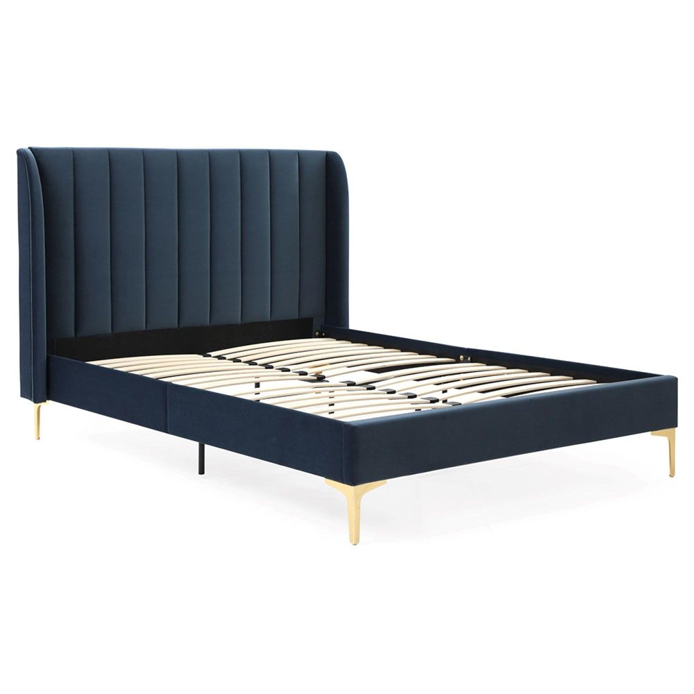 Avery Athena Ink Blue Velvet Fabric Bed - Sizes Available