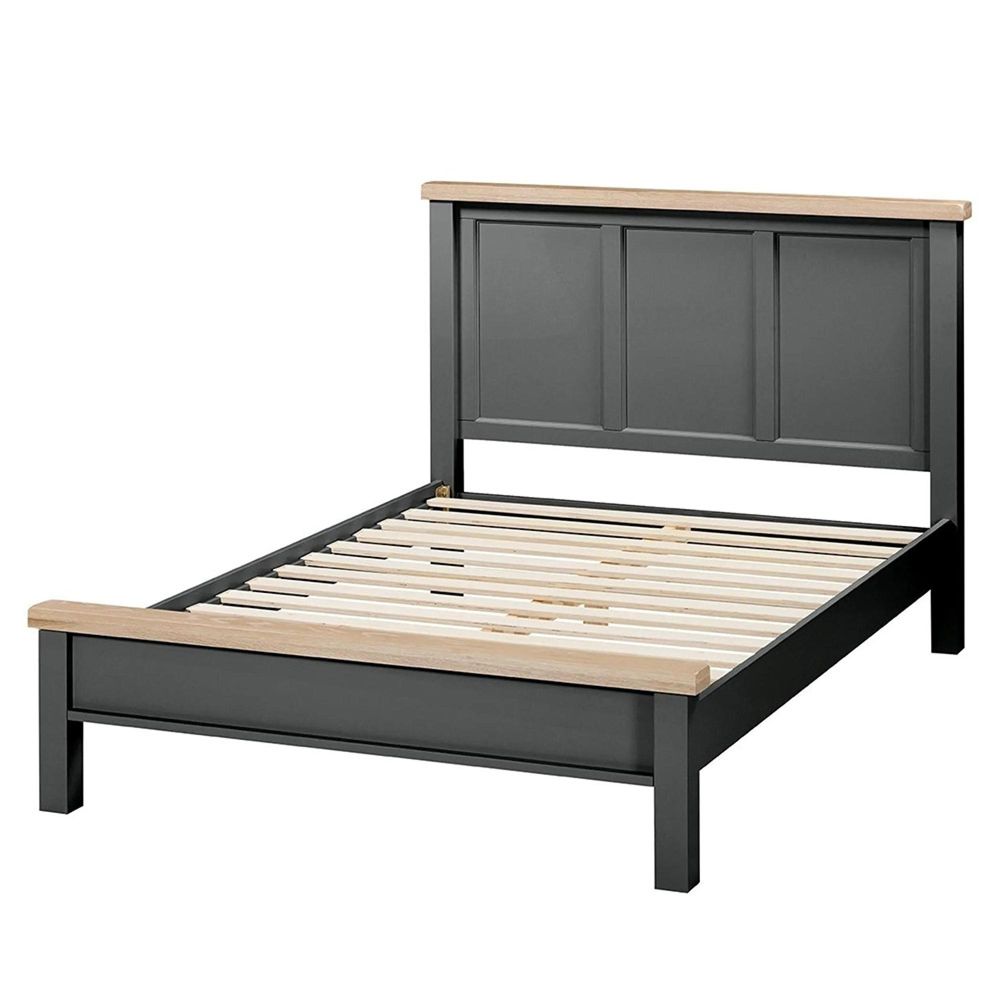 The Wilmont Black Painted Bed is designed for those who appreciate refined style with a modern edge. Crafted with care from solid oak, oak veneer, and pine, this bed combines timeless durability with bold painted furniture design. The striking black finish creates a strong statement, balanced beautifully with pale oak tops and softened corners for a sophisticated yet welcoming look.