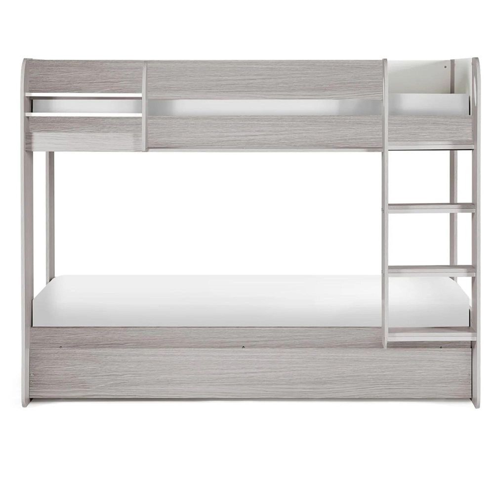 Beautifully designed with a pull-out trundle, our Mars bunk is solidly crafted to ensure the safety of your children. with shelving for books and frames, this bunk has huge practicality; combined with a timeless aesthetic, is perfect for your children?s? bedroom.