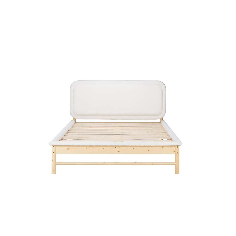 Item Code: EMMB5WHT The Emmi Bed is a stunning example of Scandi-inspired design, blending minimalist aesthetics with refined craftsmanship. With its clean lines, neutral tones, and natural wood accents, the Emmi Bed is an inviting centerpiece that effortlessly enhances any modern bedroom. The bed features a sturdy wooden frame that highlights the authentic beauty of the wood, ensuring both durability and longevity.The standout feature of the Emmi Bed is its contemporary headboard, upholstered in luxurious boucl? fabric. This textured fabric adds a touch of tactile elegance while creating a visually appealing focal point for the bed. The soft, plush boucl? fabric brings warmth and sophistication, embodying the calm, understated elegance of Scandinavian interiors and bringing a sense of tranquility to your space. The low-profile frame not only adds a modern touch but also creates a sense of openness, ideal for any stylish and functional bedroom.Equipped with a sprung slated base, the Emmi Bed provides exceptional mattress support, ensuring a restful and comfortable sleep. Tailored to fit a UK standard size mattress, the Emmi Bed combines elegance with practicality, making it a perfect choice for those who appreciate the simplicity and beauty of Scandi design.Scandi-inspired designUpholstered in luxurious boucl? fabricSprung slated base.