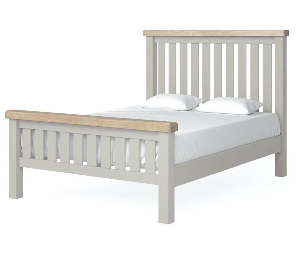 Bring timeless style and lasting quality to your bedroom with the Salcombe Grey Oak 4ft 6in Double Slatted Bed. Designed with both functionality and classic charm in mind, this bed is crafted to provide a sturdy, comfortable, and stylish foundation for restful nights. The combination of solid wood, painted finishes, and natural oak detailing makes it a versatile piece suitable for a variety of interiors, from traditional country homes to modern rustic spaces.