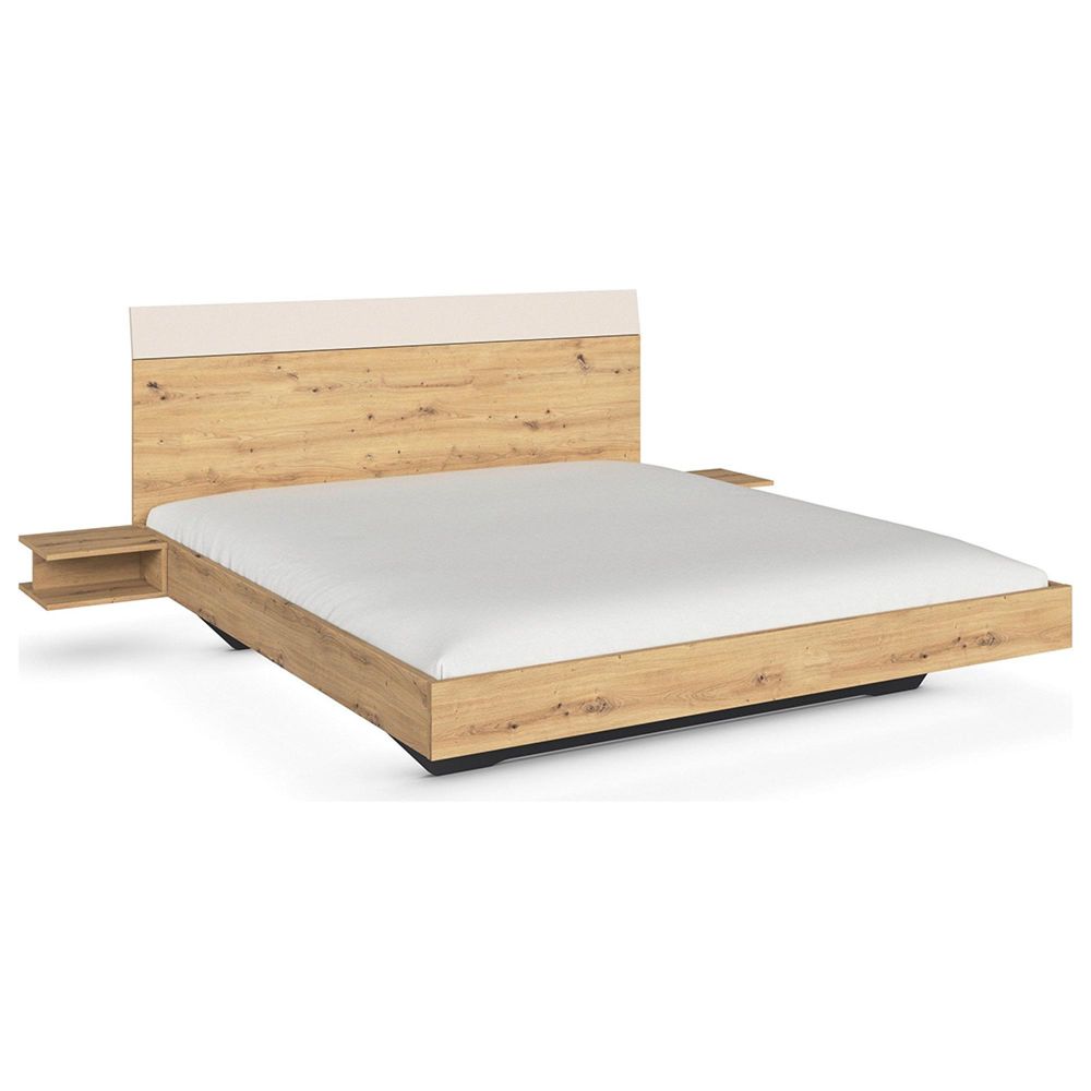Rauch Monza 6ft Queen Size Bed with 2 Hanging Bedside Table - Artisan Oak and Champagne